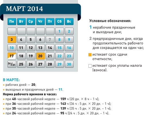 Календарь март 14