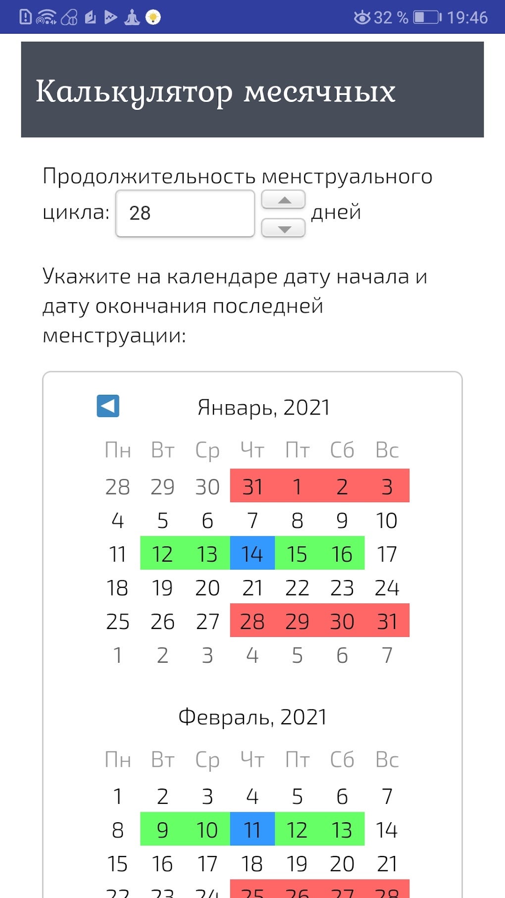 Календарь месячные начались