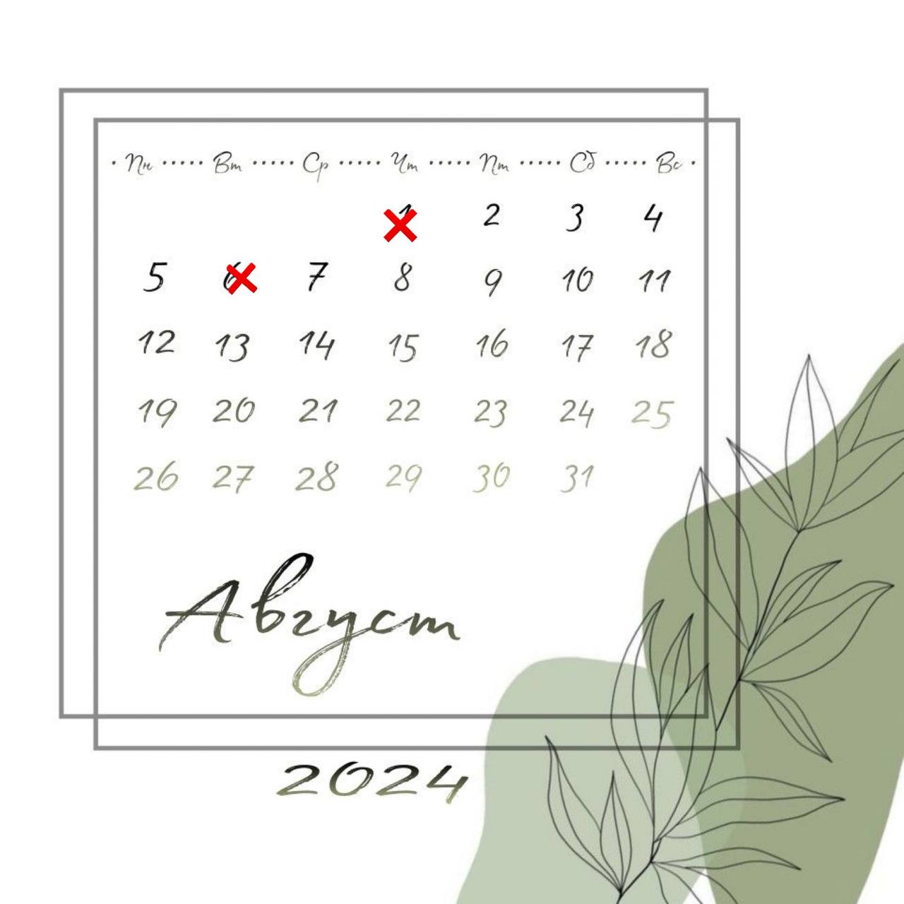 Календарь на август шаблон