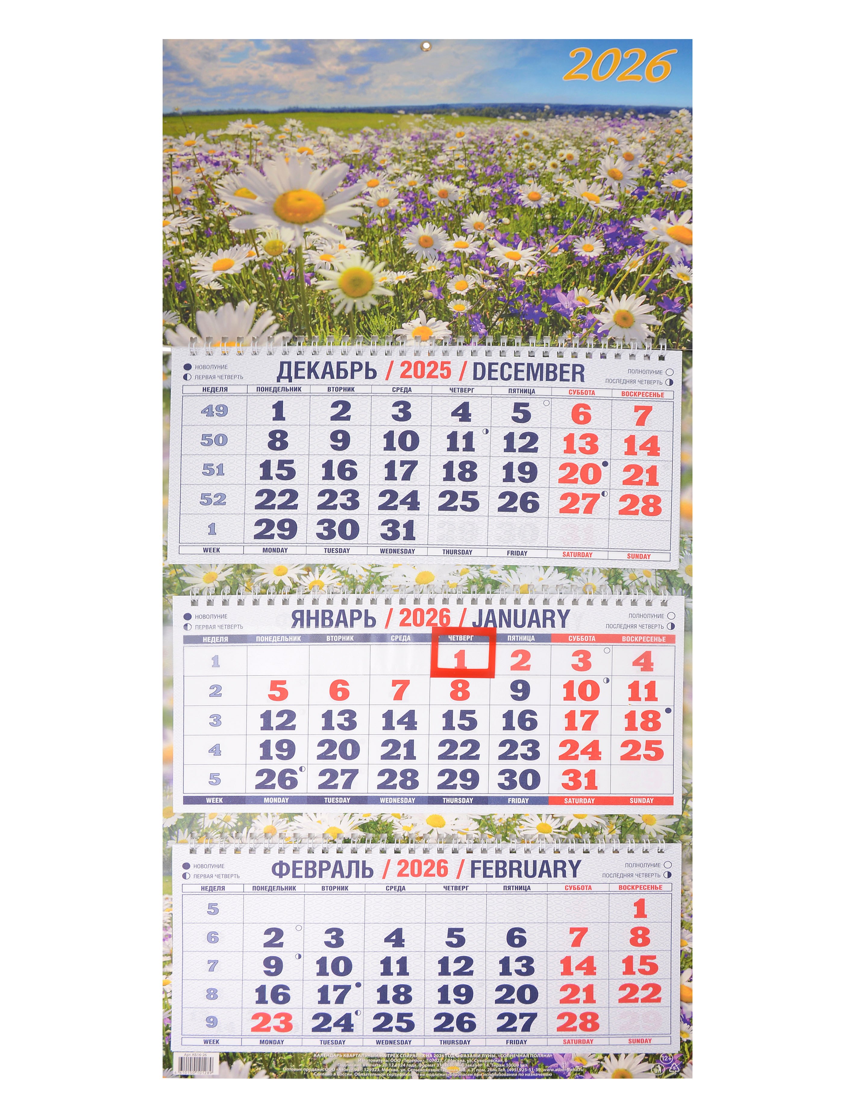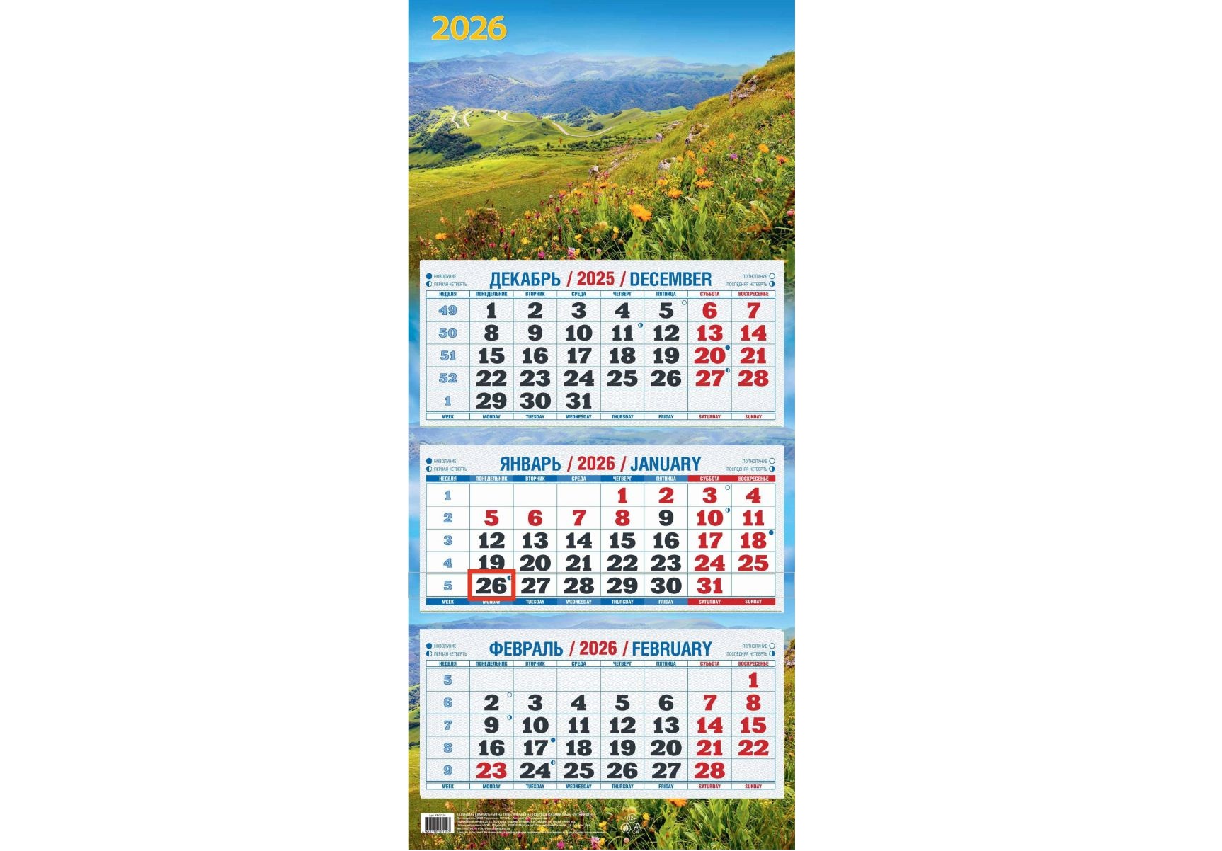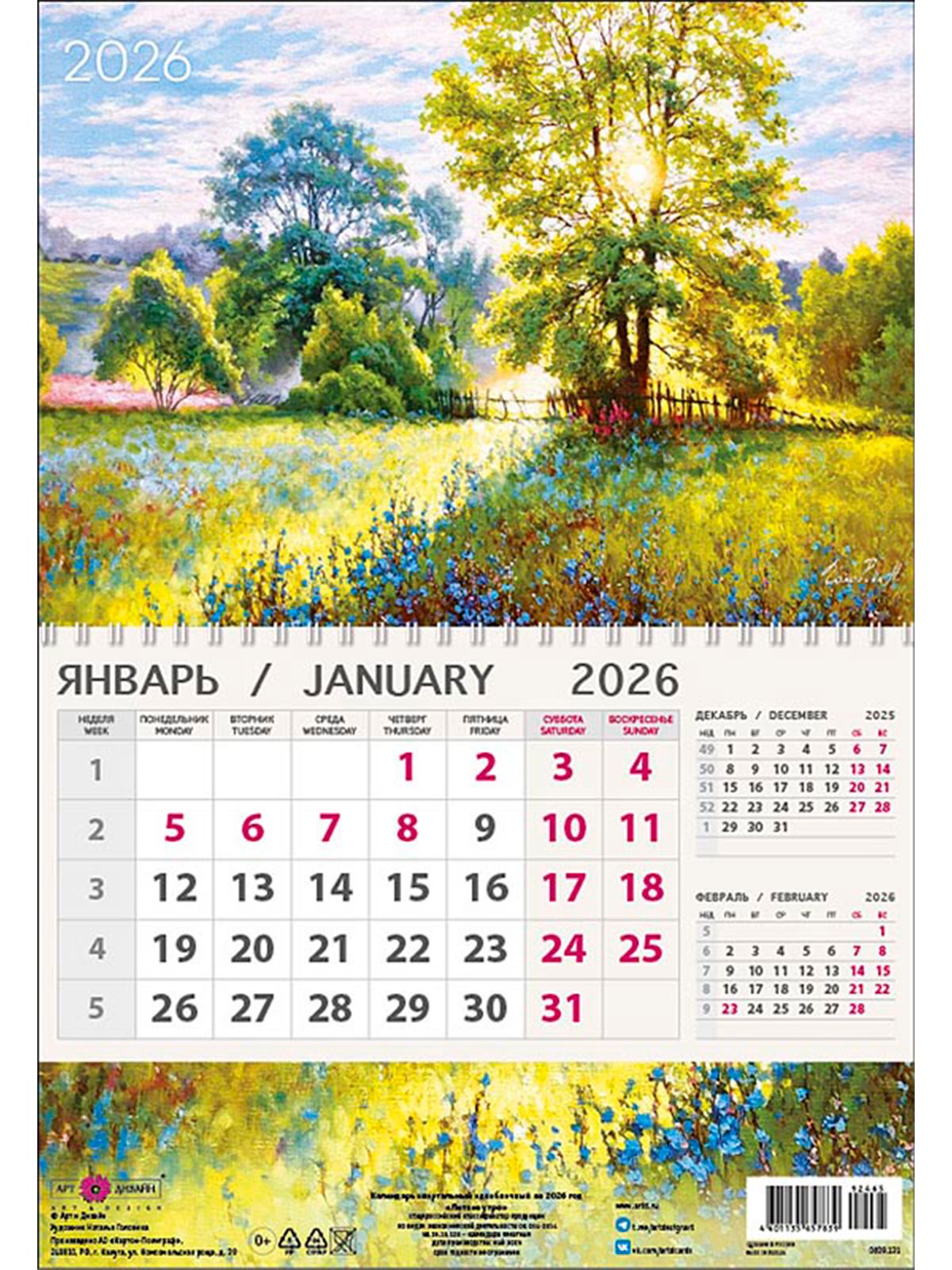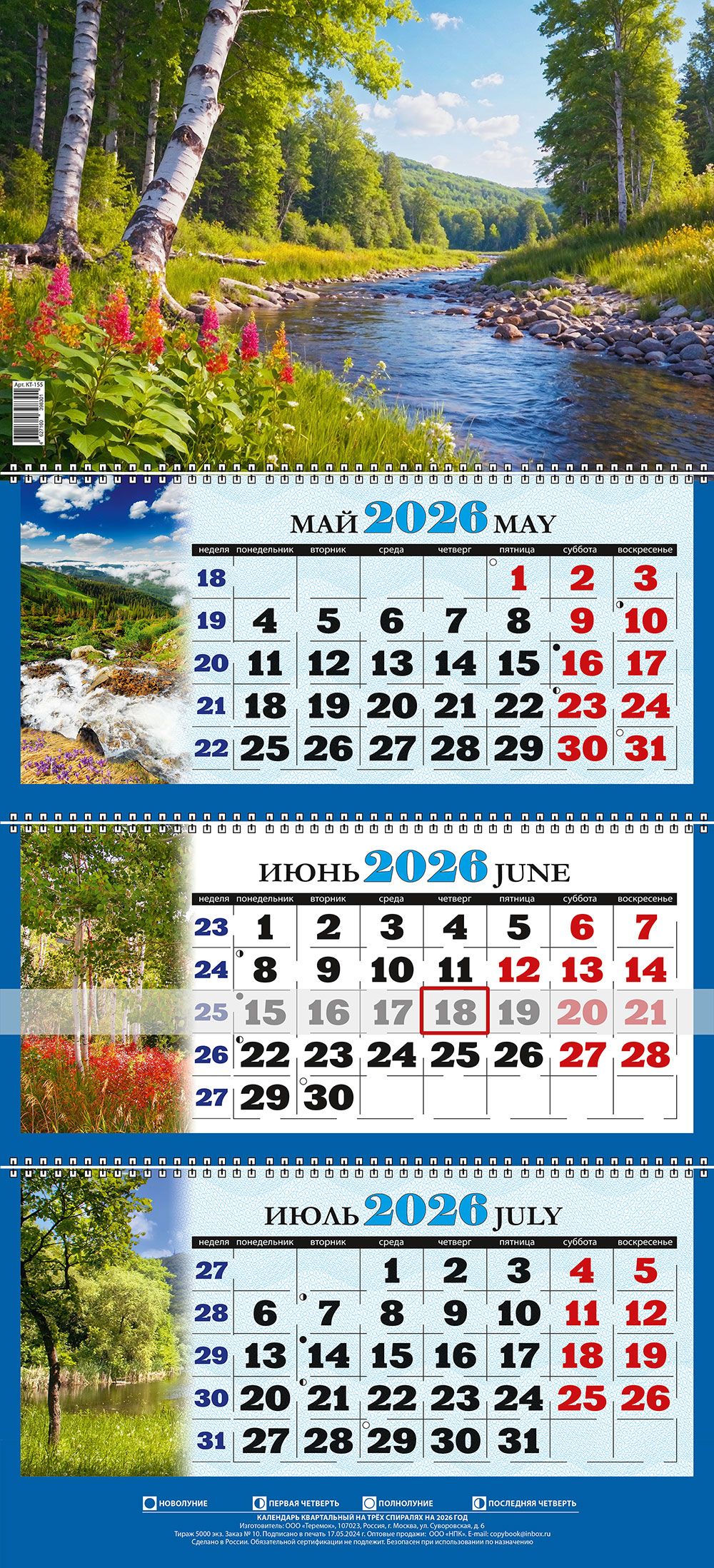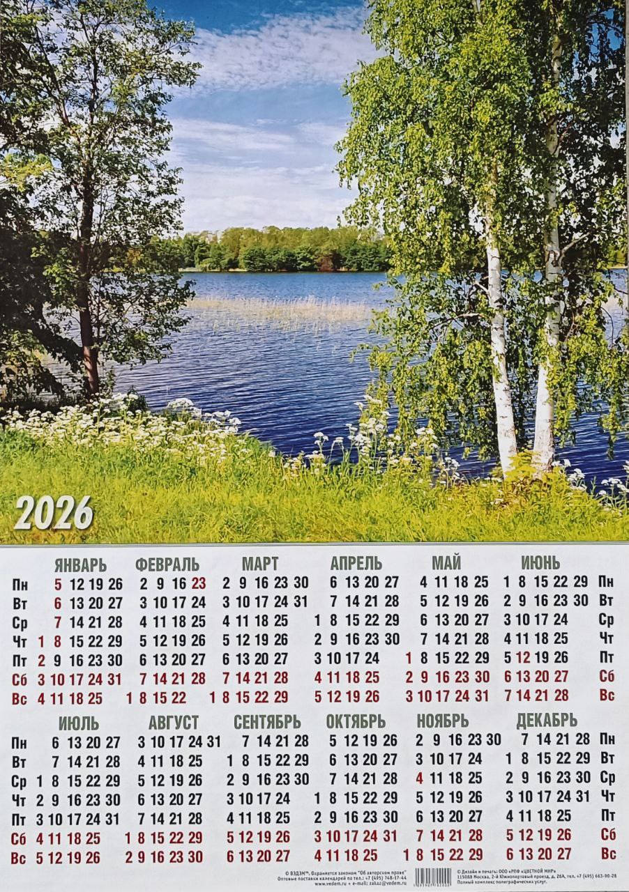 Календарь на лето 2026г