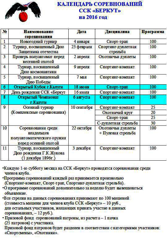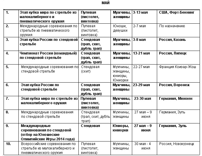 Календарь соревнований по стрельбе