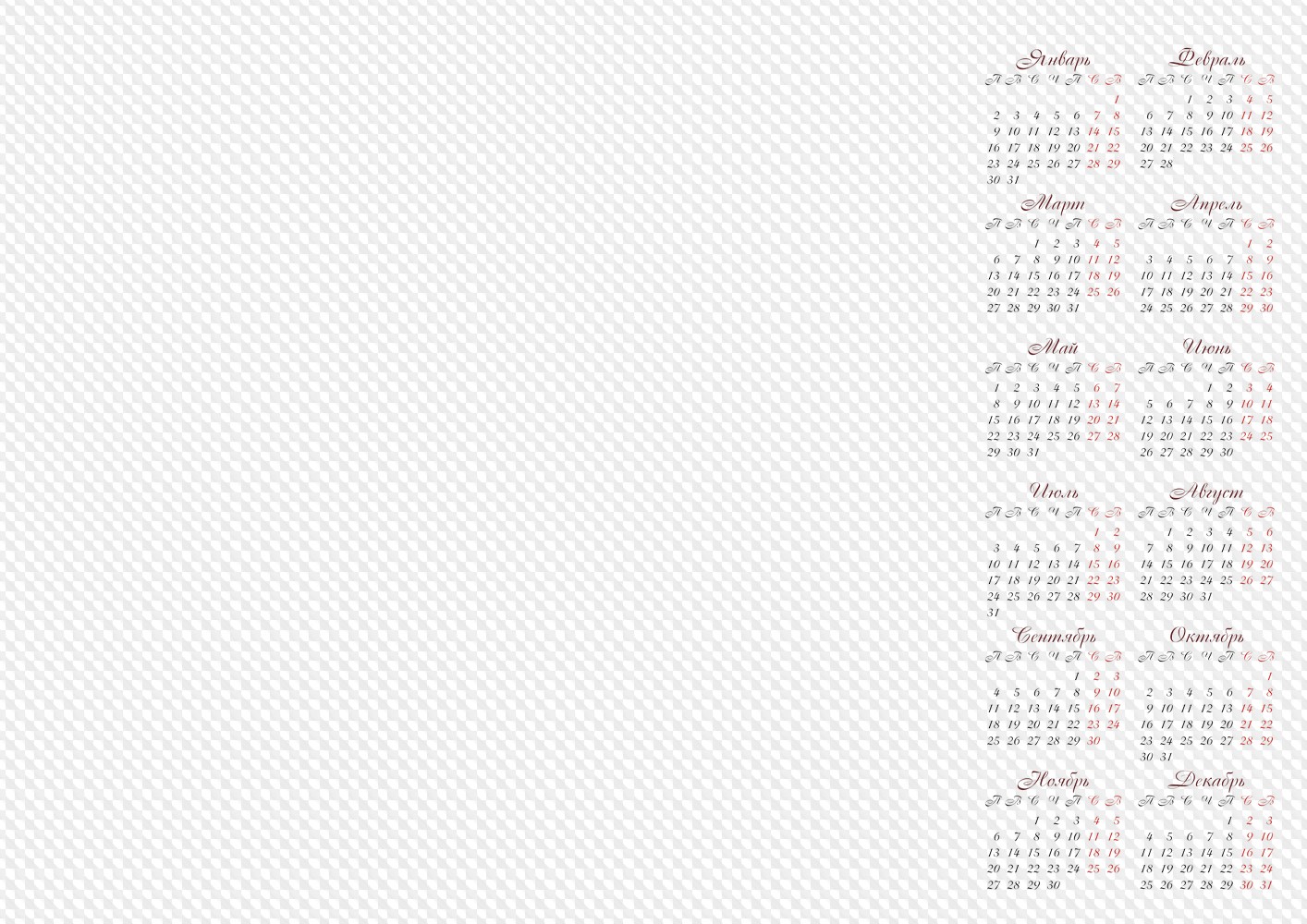 Календарная сетка пнг 2025