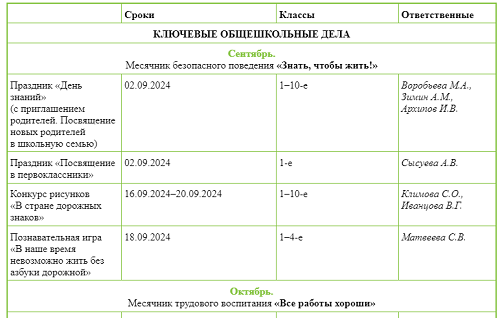 Календарные мероприятия в школе