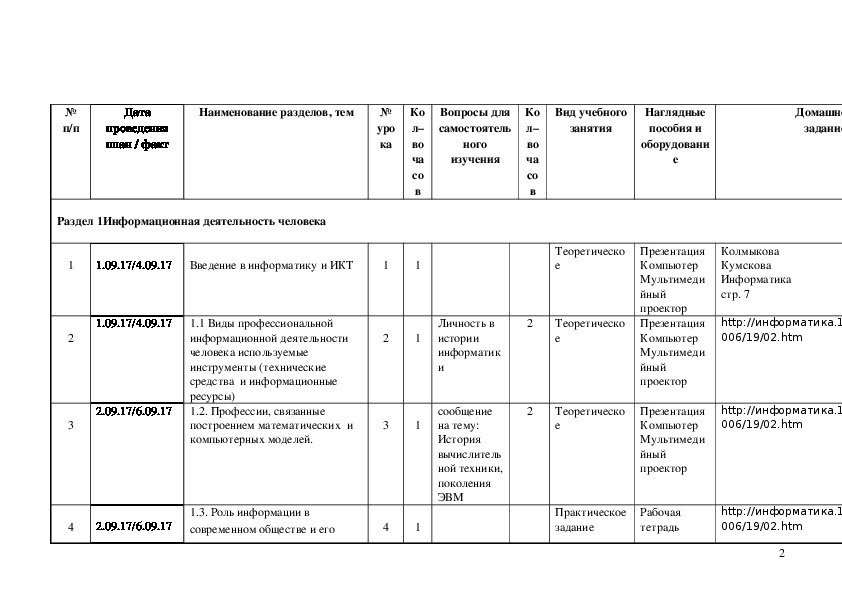 Календарный план информатика 146 фотографий