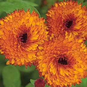 Календула НЕОН . Появление в Вашем саду этой густомахровой календулы с цветками оригинальной окраски никого не оставит равнодушным . Тёмно-оранжевые цветки с кончиками окрашенными в темно-красный (бургунди) цвет .