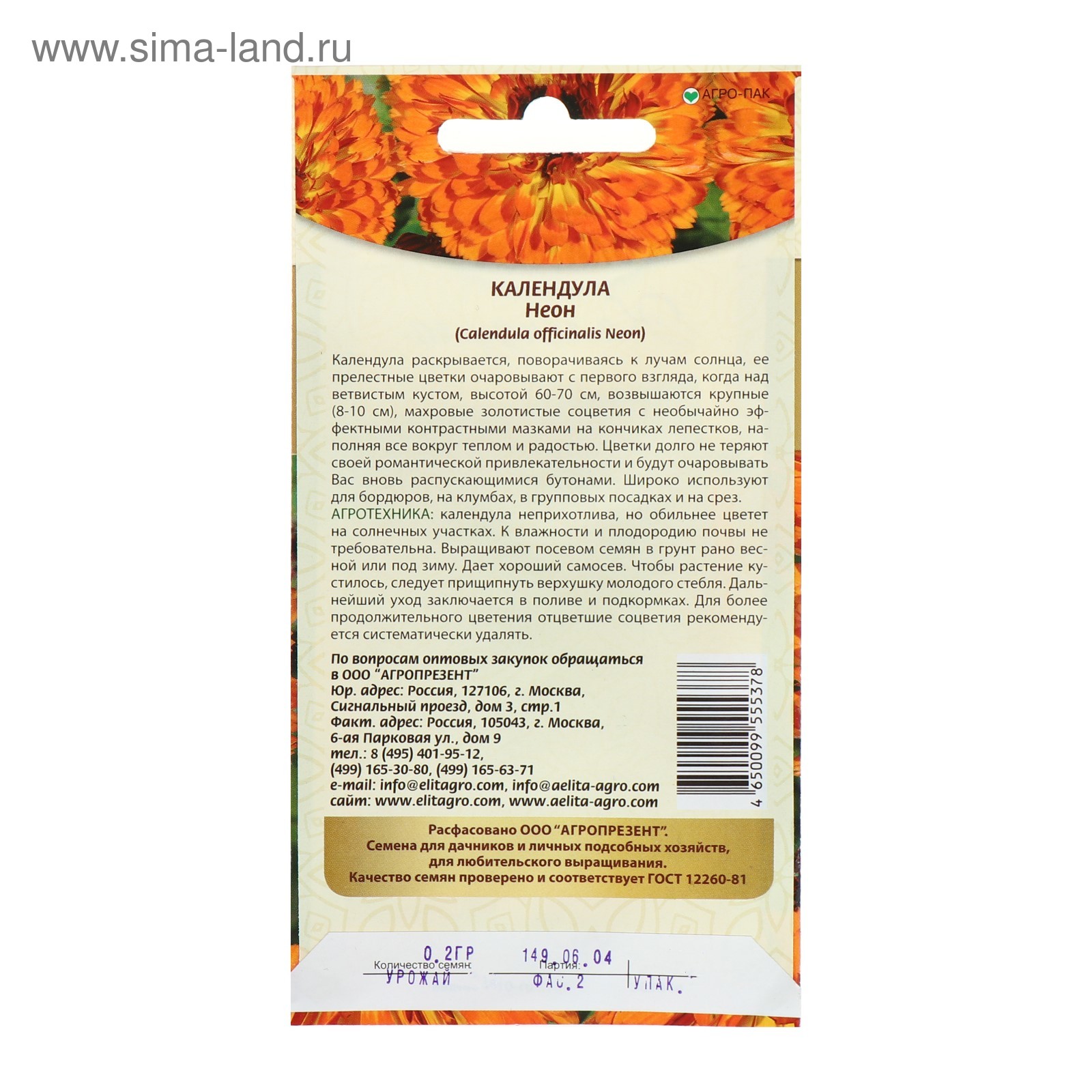 Календула Неон (Аэлита) — купить, заказать в магазине . . .