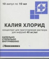 Калия хлорид (5 мл, 10 мл; 40 мг/мл) форма: Концентрат для приготовления раствора для инфузий . Полное описание (Калия хлорид (5 мл, 10 мл; 40 мг/мл): применение, состав, дозировка, показания, противопоказания, побочные действия .