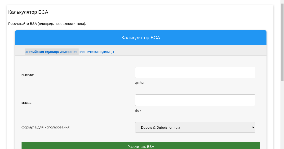 Калькулятор bsa