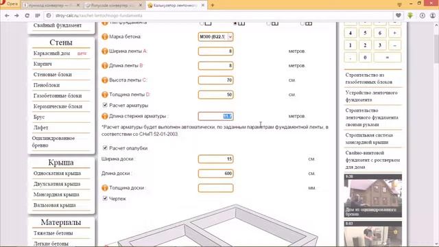Калькулятор материала для фундамента