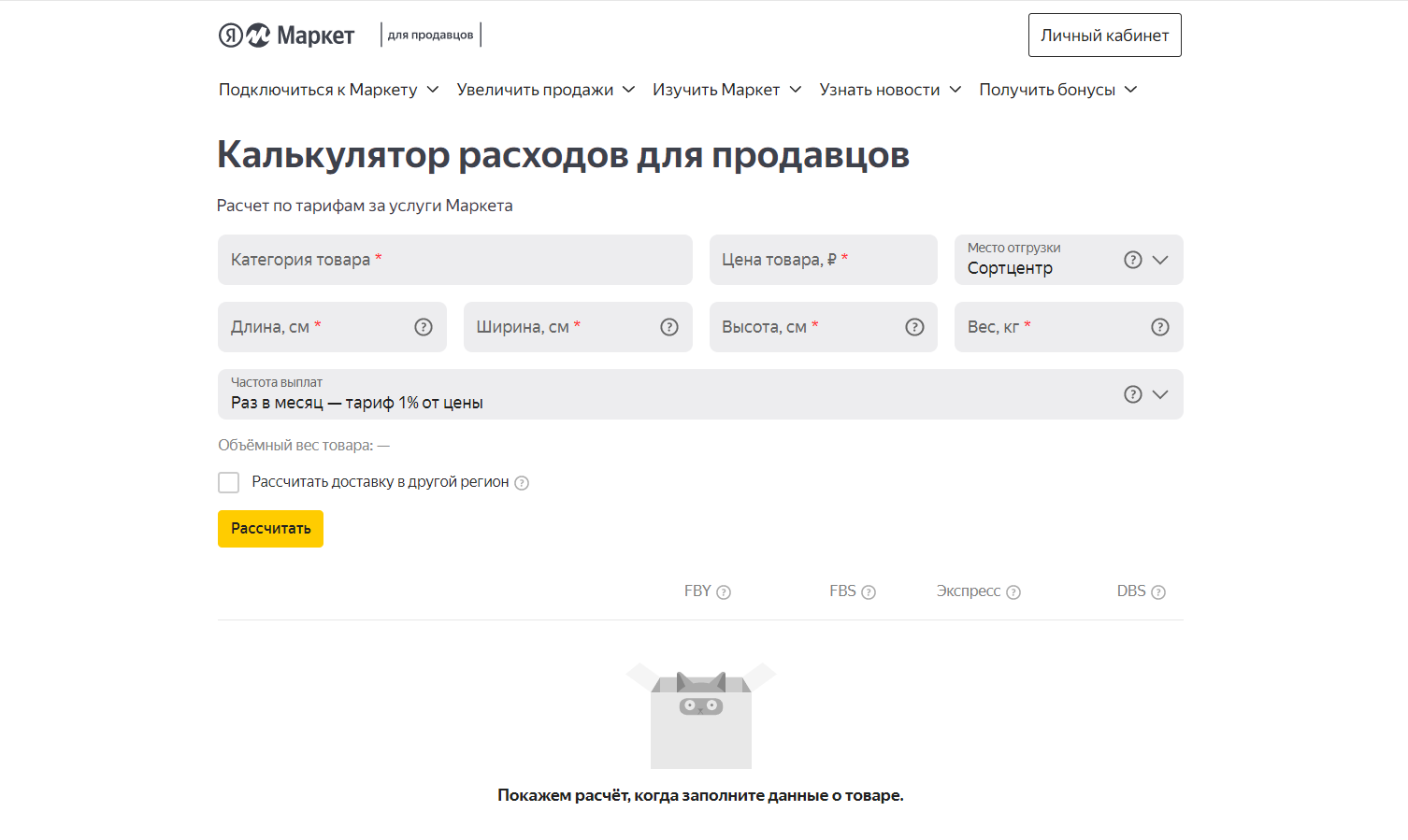 Калькулятор расходов маркет