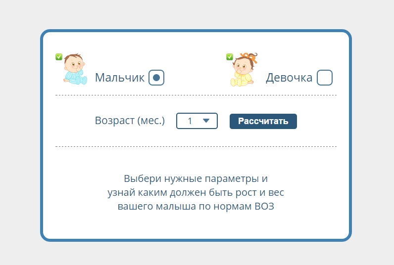 Калькулятор веса и роста ребенка девочка