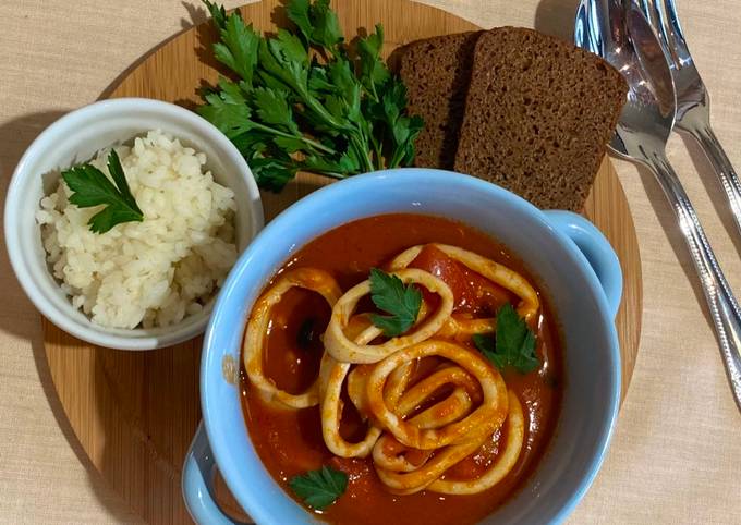 Кальмары в томатном соусе - как приготовить быстро, просто и вкусно в домашних условиях . Пошаговый рецепт с фотографиями, подробным описанием и ингредиентами .