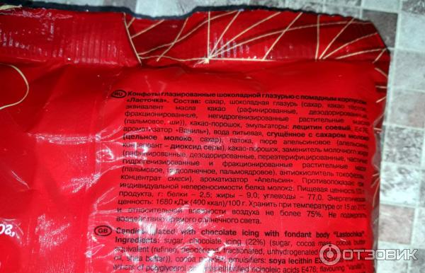 Калории конфет ласточка