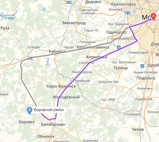 Калуга боровск расстояние