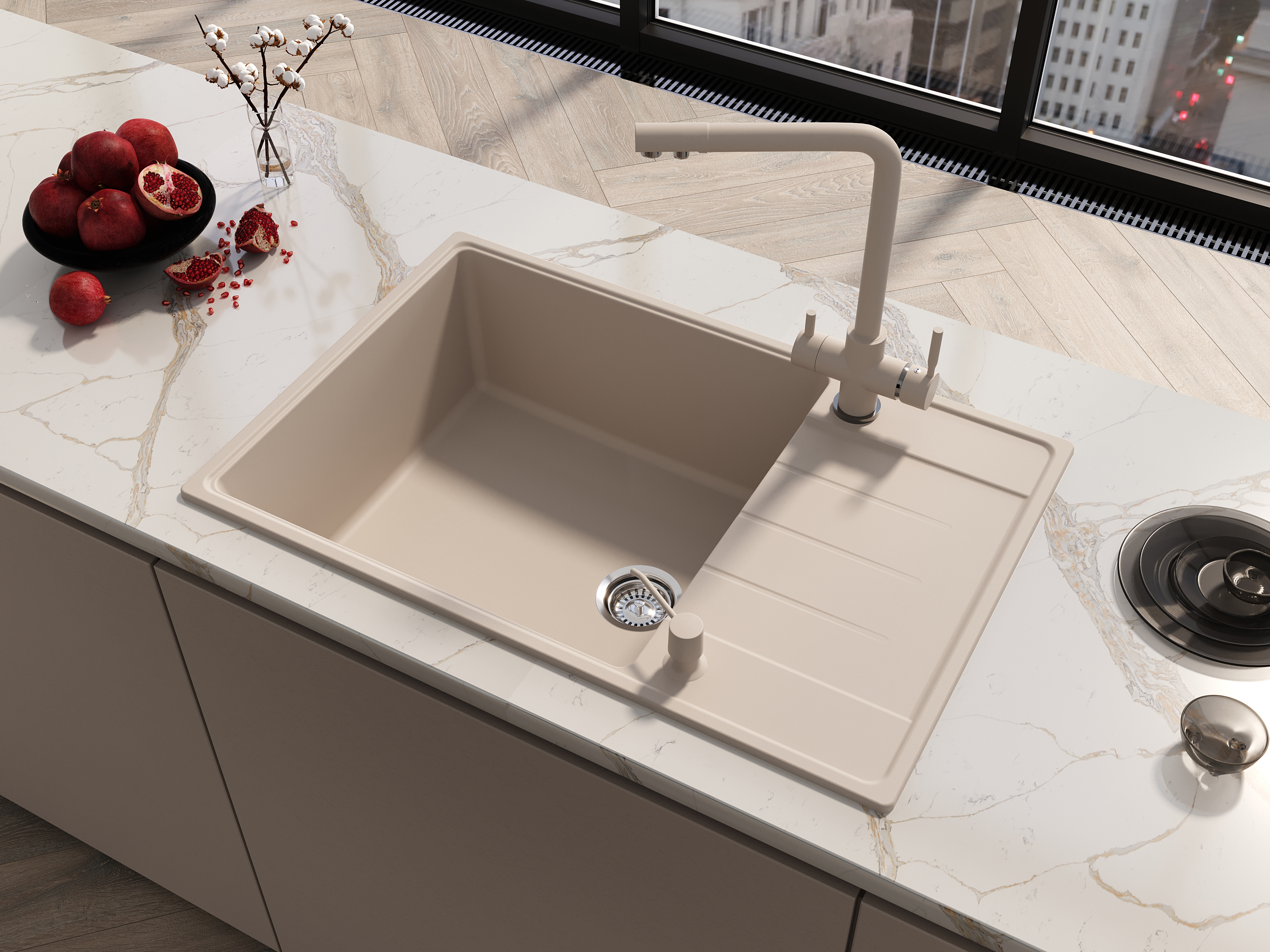 Каменная мойка с крылом