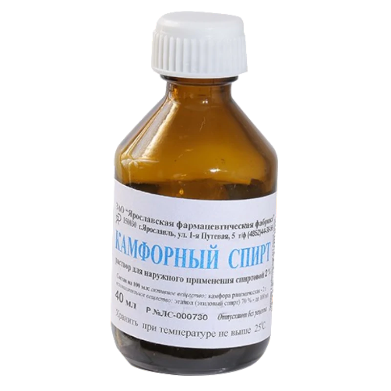 Камфорный спирт (Spiritus Camphoratus): камфоры — 10 г, спирта 90%-го — 70 мл, воды — до 100 мл . Применяют наружно для растираний и предупреждения пролежней . Камфорный спирт 2%-й (антисептическое и слабое местноанестезирующее средство) .