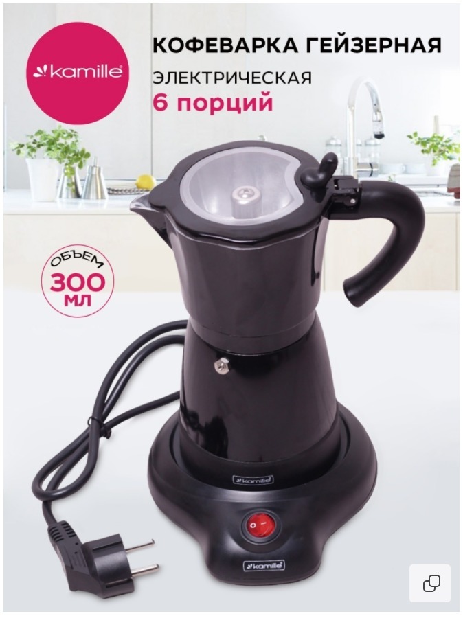Электрическая гейзерная кофеварка Kamille создана для приготовления великолепного кофе по современным . . .