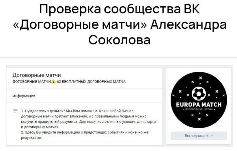 Каналы договорные матчи