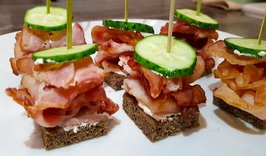 Канапе с беконом и огурцом