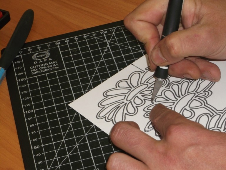 Канцелярским ножом вырезал