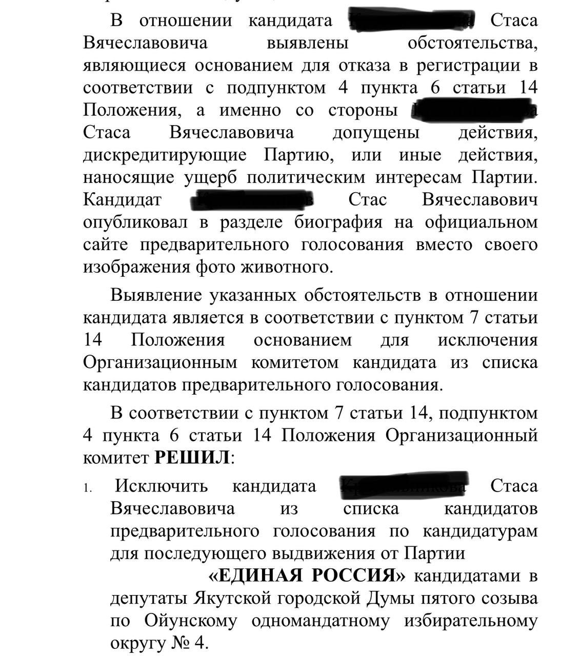 Кандидата предварительного голосования