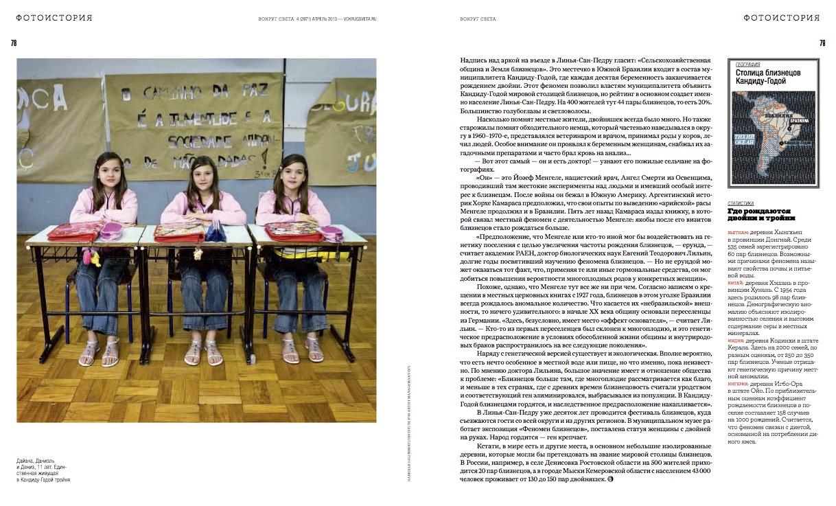 Бразильский город Кандиду-Годой, также известный всему миру как "Земля близнецов", где каждая десятая беременность заканчивается рождением близнецов . Считается, что это проделки печально известного нациста, медика . . .