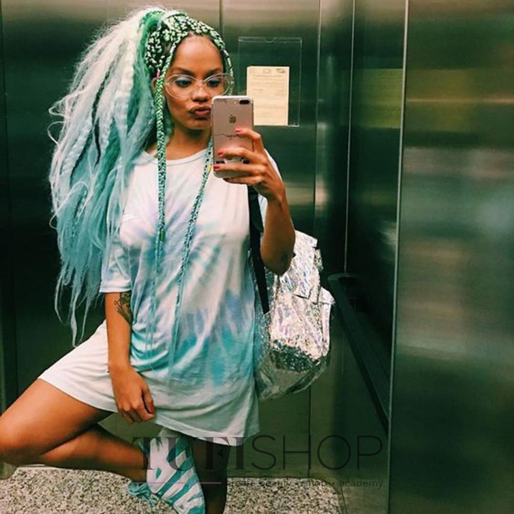 Радужные тонкие косички украсят любой молодежный образ, а длинные косы можно собирать в цветной пучок либо носить ярким и свободным водопадом .