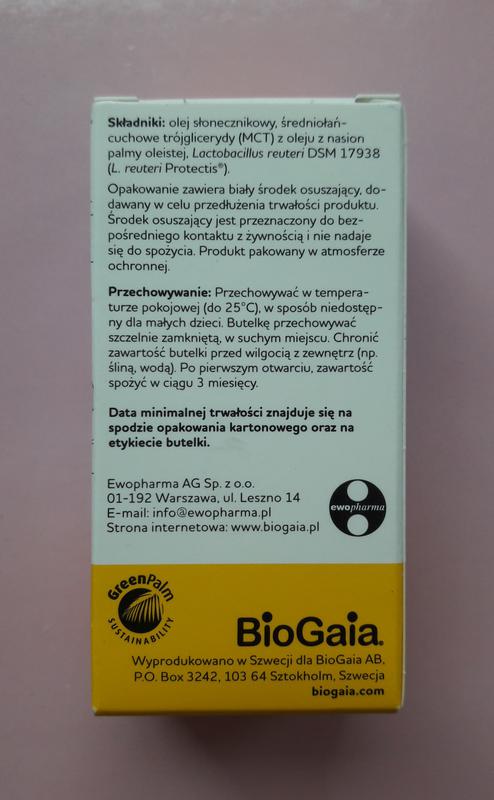 БиоГая - капли для перорального применения во флаконе из темного стекла с винтовой крышкой и индикатором первого вскрытия, с пипеткой и осушителем внутри, упакованном в картонную коробку . Состав Капли БиоГая содержат активный ингредиент: Lactobacillus reuteri Protectis (100 млн .