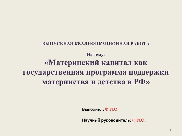 Дипломная работа на тему: материнский капитал