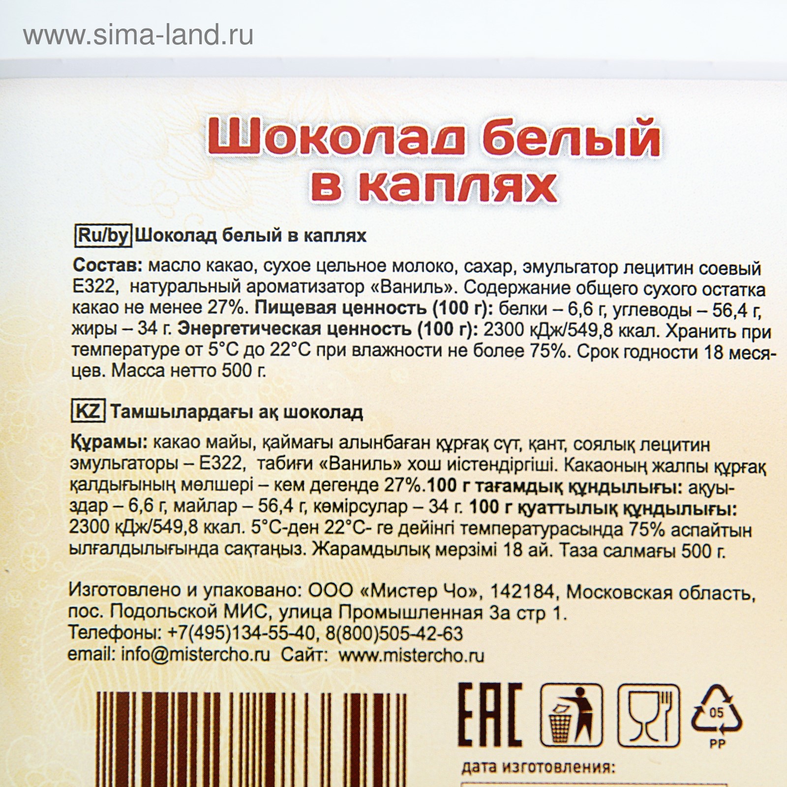 Капли белого шоколада