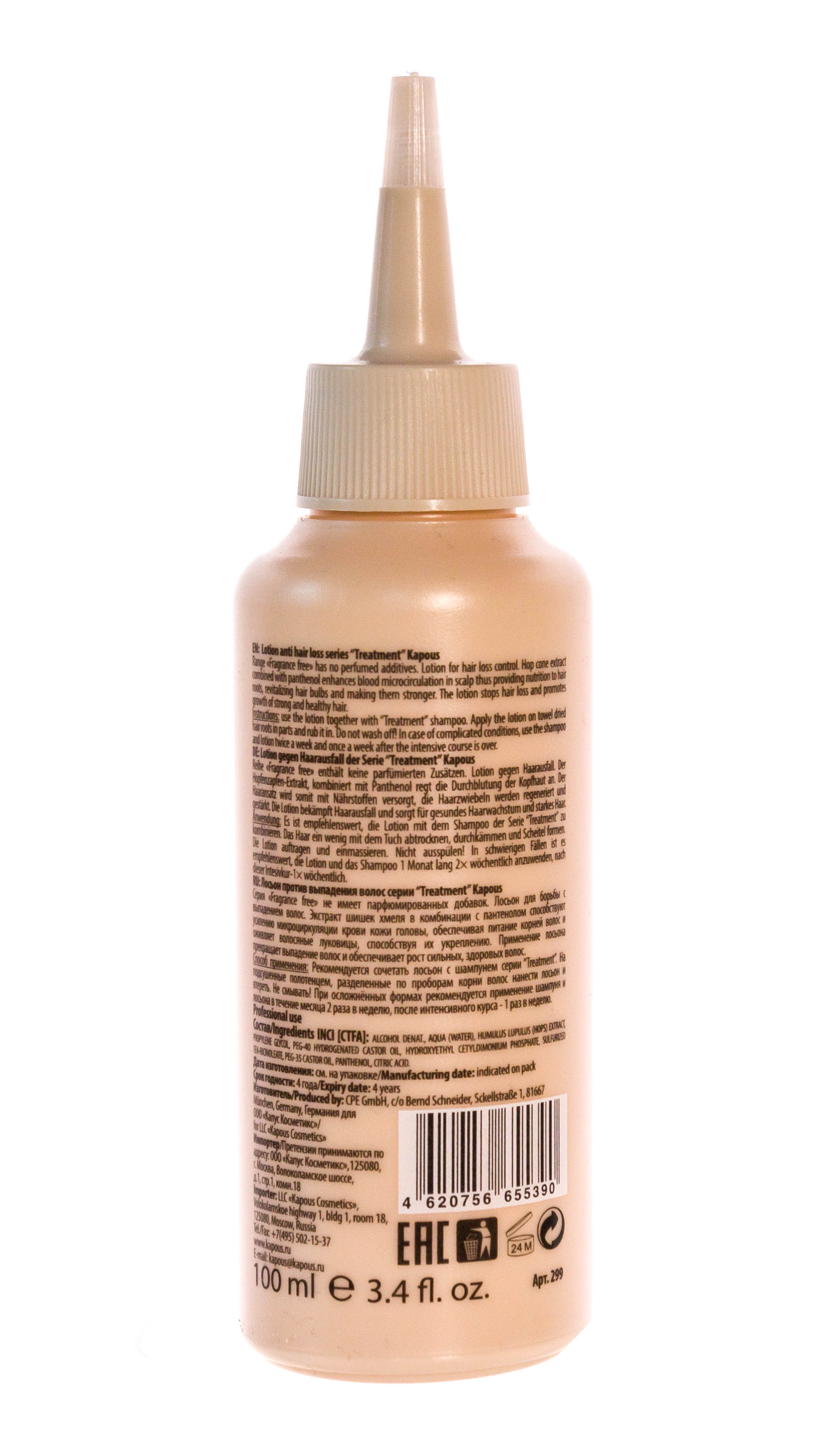 Лосьон Капус treatment — препарат, предназначенный для борьбы с обильным выпадением прядей. Одновременно с пресечением этой проблемы средство может нормализовать микроциркуляцию крови кожного покрова, обеспечить интенсивное питание, обогащение влагой, доступ кислорода в ткани дермы.