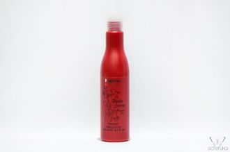 Бутыль с вытянутым верхом, редко такой формы упаковку с шампунем встретишь. Красного цвета с не читаемым на ней текстом. Дозатор диск топ.