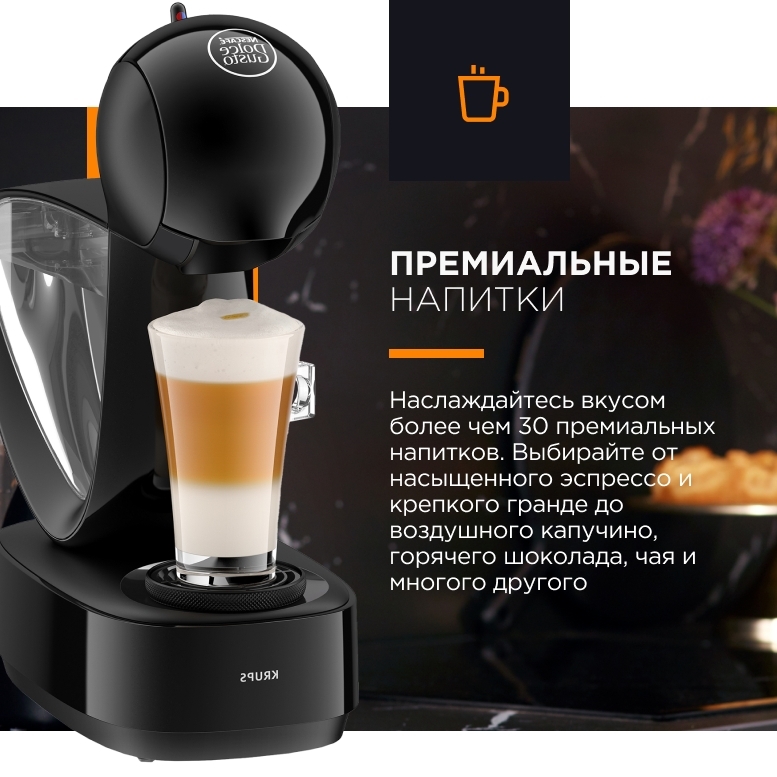 Dolce Gusto Krups Dolce Gusto Infinissima KP173B10 - компактная кофемашина, которая благодаря ширине основания 15,5 см поместится даже на небольшой кухне .
