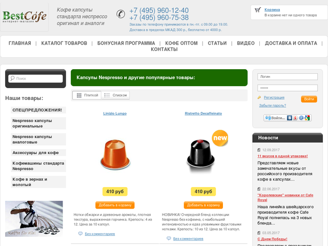 Интернет магазин кофе в капсулах и кофемашин Nespresso . . .