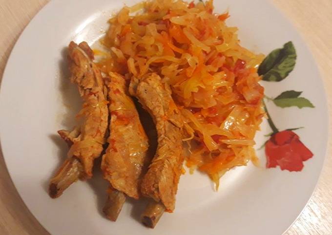 Ребрышки с капустой - 7 рецептов в домашних условиях, с фото