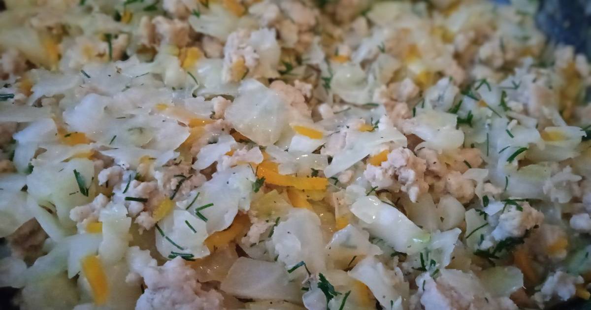 Капуста с фаршем и рисом сметаной