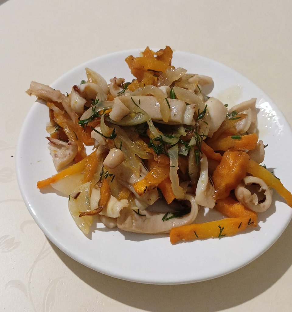 Капуста с кальмарами тушеная