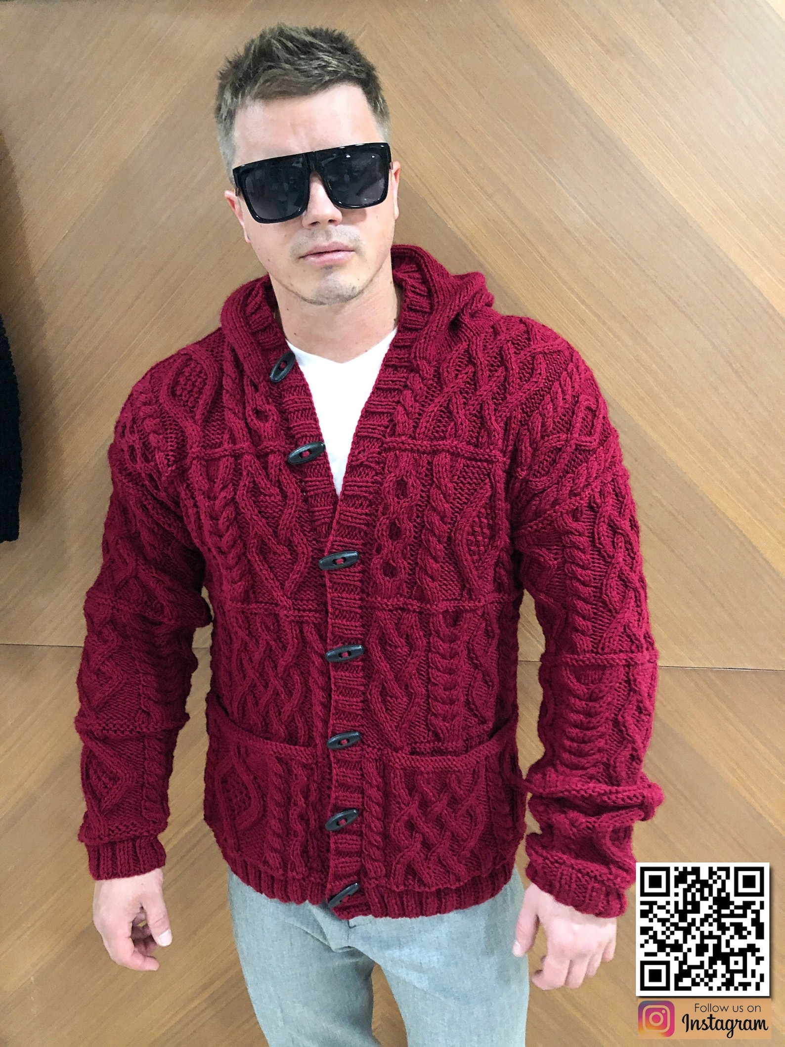 Кардиган крупной вязки на пуговицах мужская