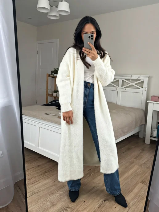 Кардиган пушистый длинный