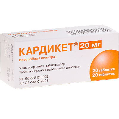 от 49 руб . Подробнее . Оцените статью: 4 .67 1 1 1 1 1 4 .7 из 5 (3 голосов) Действующее вещество: изосорбида динитрат (в таблетках - 20, 40 или 60 мг, капсулах - 120 мг) . Кардикет - антиангинальный препарат с вазодилатирующим действием, применяемый при лечении заболеваний сердца .