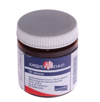 Кардиомагнил таблетки 150 мг+30,39 мг, 30 шт . 267 руб . 295 Инструкция по применению Производитель Состав Фармакологическое действие Показания Противопоказания Побочные действия Взаимодействие Как принимать, курс приема и дозировка Передозировка Специальные указания Условия хранения Срок годности Действующее вещество Лекарственная форма Назначение
