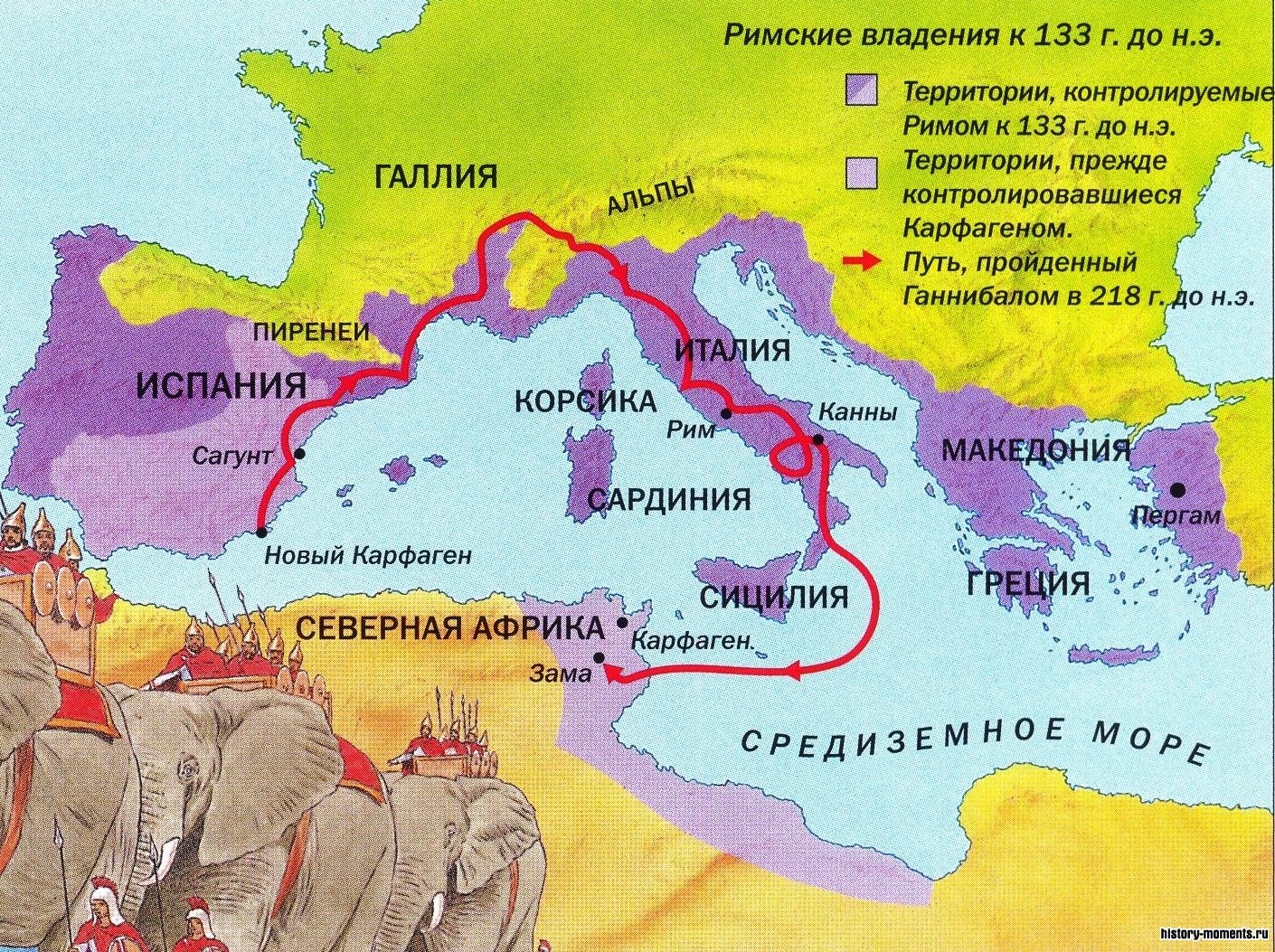 Карта Средиземноморья после Третьей Пунической войны.