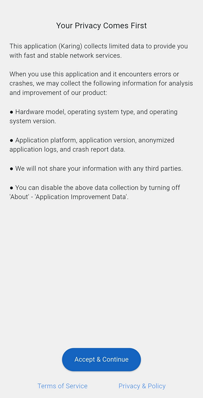 Пользователи MacOS: при установке из образа программа запросит дополнительные разрешения, которые надо предоставить. Подробнее – Karing на MacOS*