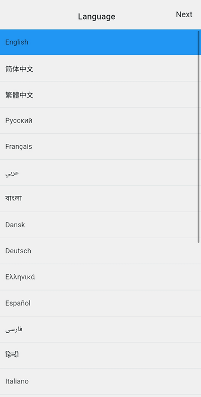 Соглашаемся, и попадаем на второй экран - выбор Язык (Language) интерфейса: