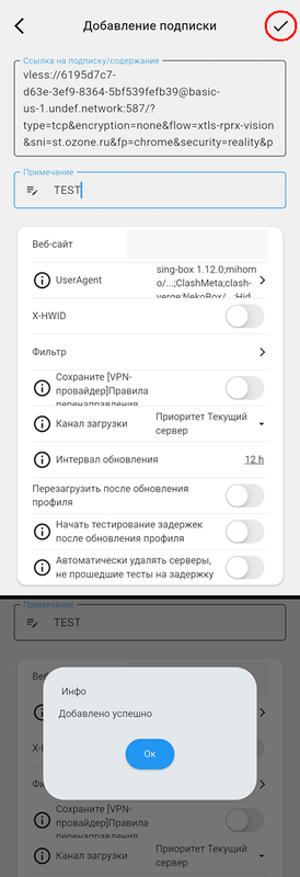 Затем нажмите галочку в правом верхнем углу - это добавит профиль в программу: