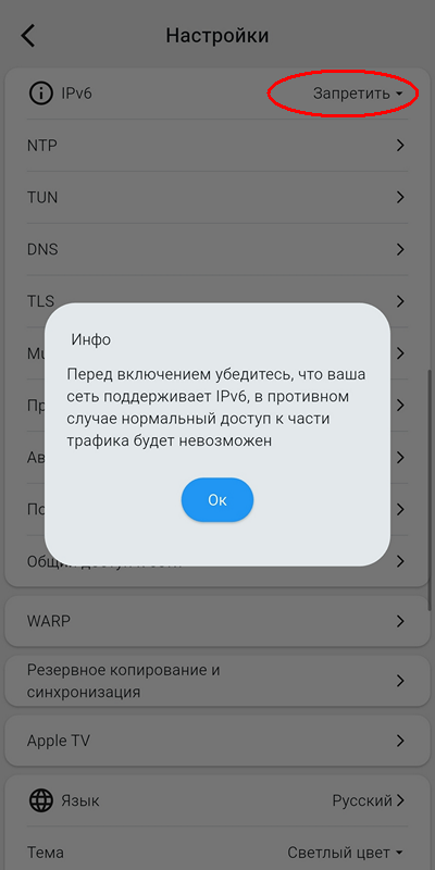 Ipv6 – возможность использовать помимо протокола ipv4 и протокол ipv6. Если ваша сеть от ISP поддерживает его, то можно включить – Karing умеет с ним работать. Но если провайдер не поддерживает протокол, и вы его включите – то могут проявиться неожиданные глюки. Это связано с тем, что протокол ipv6 имеет более высокий приоритет, чем ipv4. Особенно лишний протокол склонен мешать на компьютерах – это выглядит как невозможность зайти на некоторые сайты. При сомнениях – включите его, и сделайте тест Доступность сети с главной страницы – там будет ясно, есть у вас поддержка в сети ipv6 или нет. С другой стороны, тот же Instagram может лучше работать при обоих включенных протоколах.