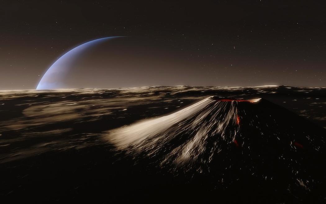 Поверхность покрыта морями жидкого азота, на которой плавают айсберги водяного льда . Ядро карликовой планеты каменное, окружённое 300-километровым слоем льда .