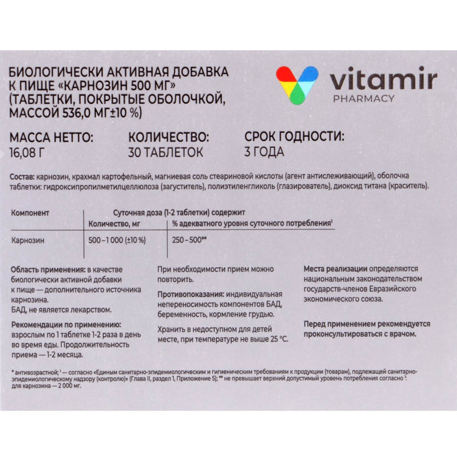 Карнозин состав препарата