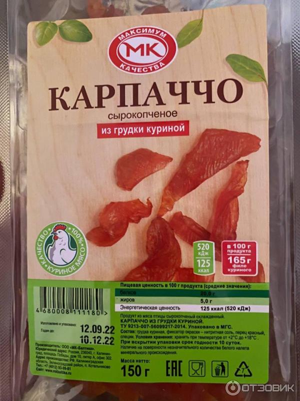 Карпаччо сколько калорий