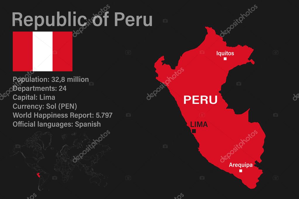 Подробная карта Перу с городами и регионами . Туристическая карта Перу на русском языке . Где находиться Перу на карте мира .